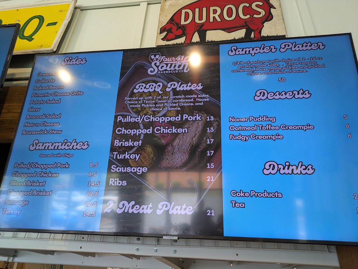 Welcome to the mouthwatering world of Four 41 South BBQ Co., nestled at 149 Reinhardt College Pkwy in Canton, GA. This BBQ haven offers a robust menu that tantalizes with flavors, featuring tender brisket, juicy pulled pork, and exquisite smoked sausage. Each sandwich comes with a complimentary bag of chips, with upgrades available for an enhanced experience.